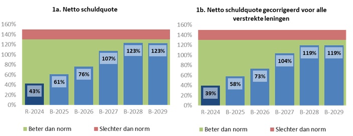 1b. Netto schuldquote gecorrigeerd voor alle verstrekte leningen | < 90% | 90% > < 130% | > 130% |