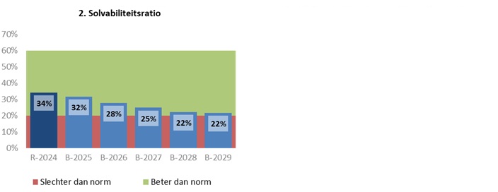Ook de solvabiliteit heeft van 2026 tot en met 2029 de signaleringswaarde 'neutraal'. De omvang van de netto schuldpositie en de mate van solvabiliteit houden verband met elkaar. Een hoge schuld betekent een lagere solvabiliteit. Een belangrijke constatering is dat de solvabiliteit boven de 20% blijft gedurende de periode 2026-2029. Dit is de grens waarop eventuele structurele tekorten in de begroting gedekt mogen worden uit de algemene reserve.