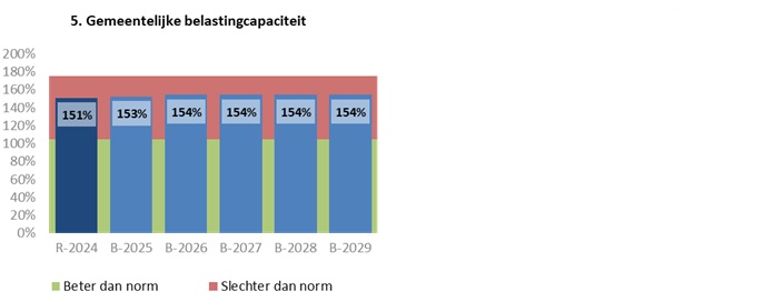 5. Gemeentelijke belastingcapaciteit | 151,1% | 152,5% | 154,4% | 154,4% | 154,4% | 154,4% | |
